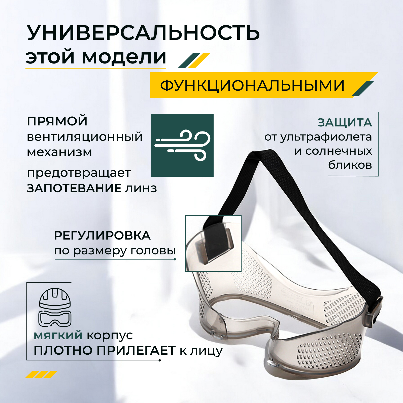 Очки закрытые панорамные с прямой/непрямой вентиляцией