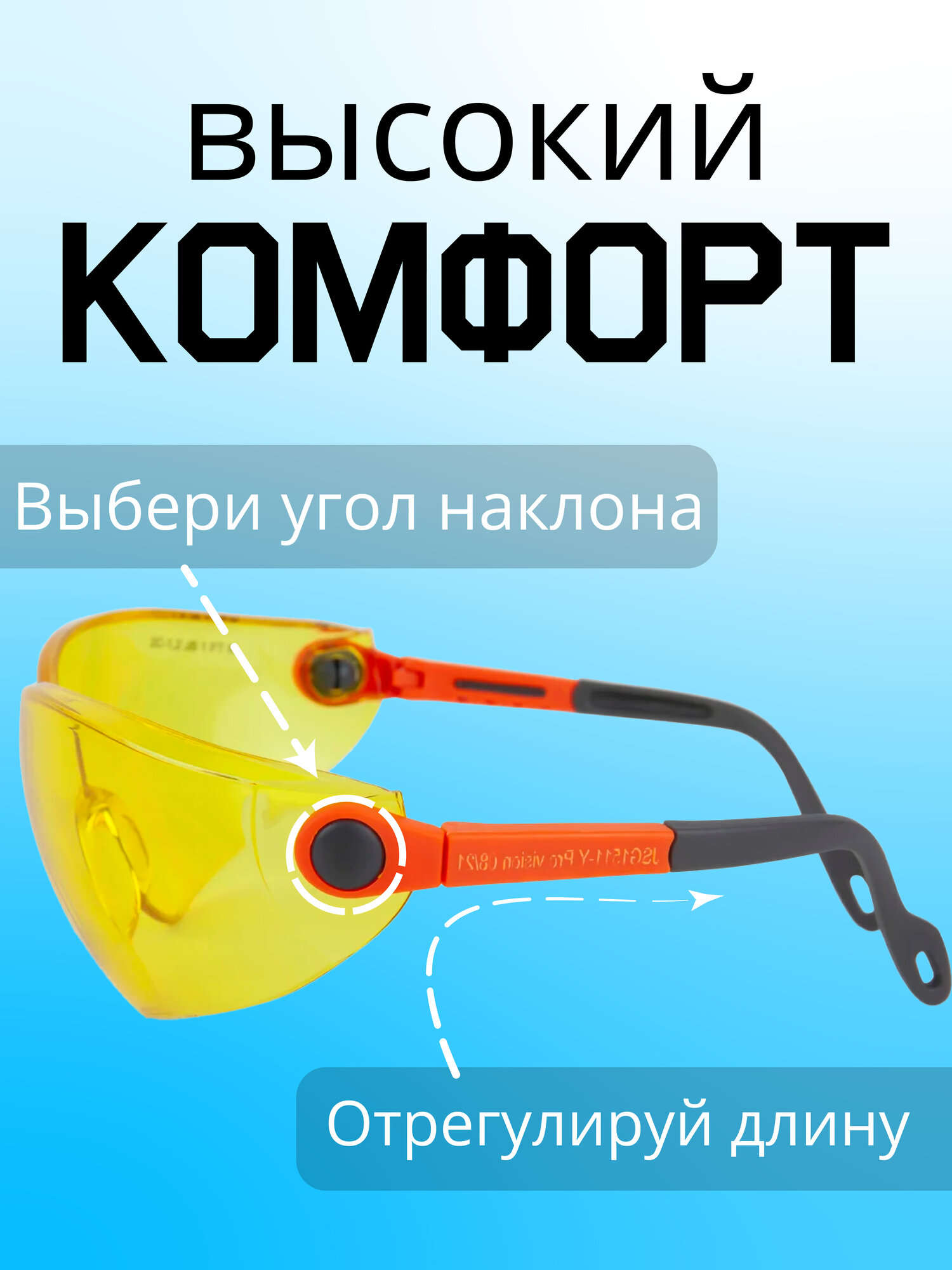 Очки защитные открытые с регулировкой дужек, янтарные линзы JSG1511-Y Jeta Safety