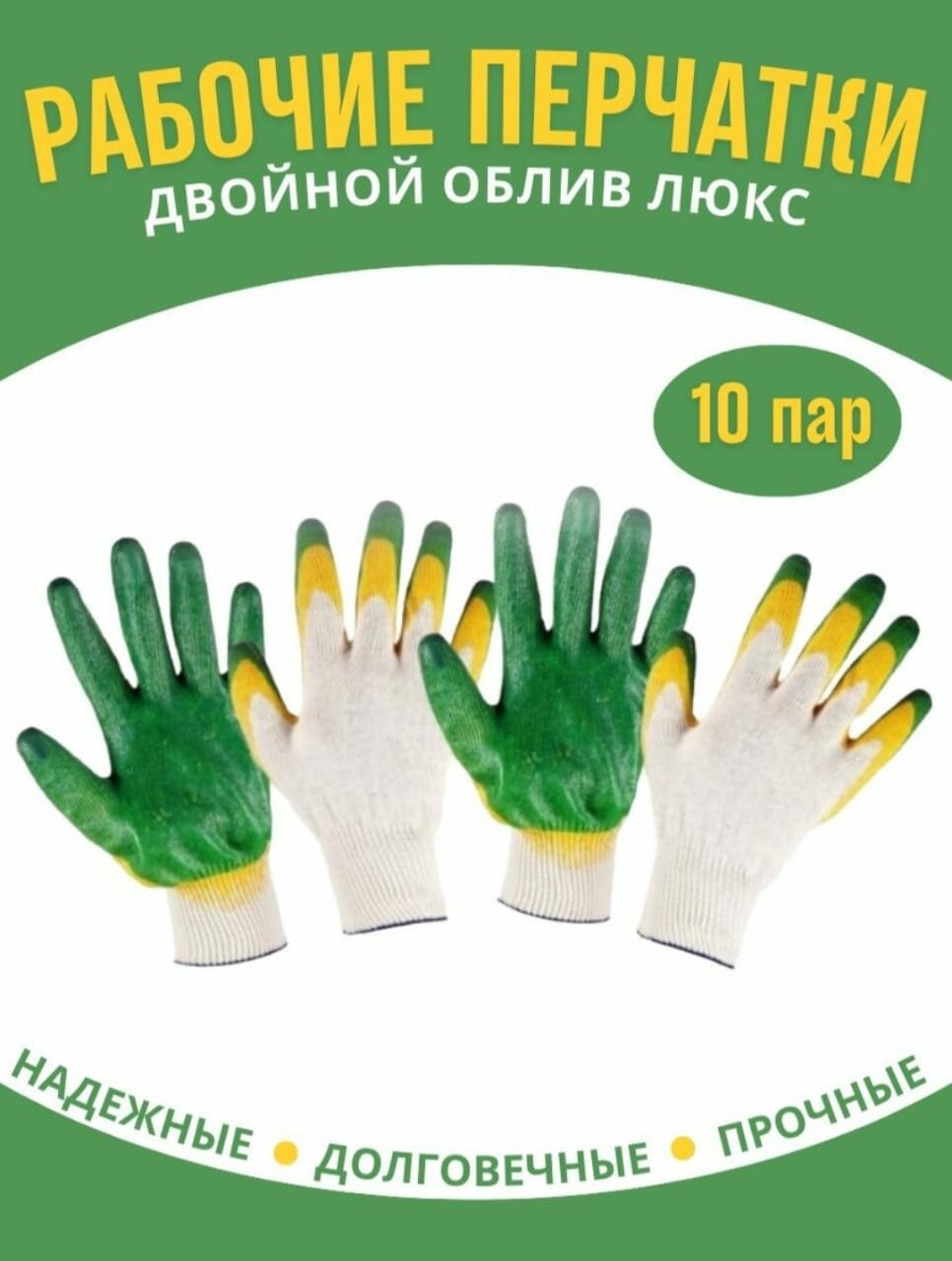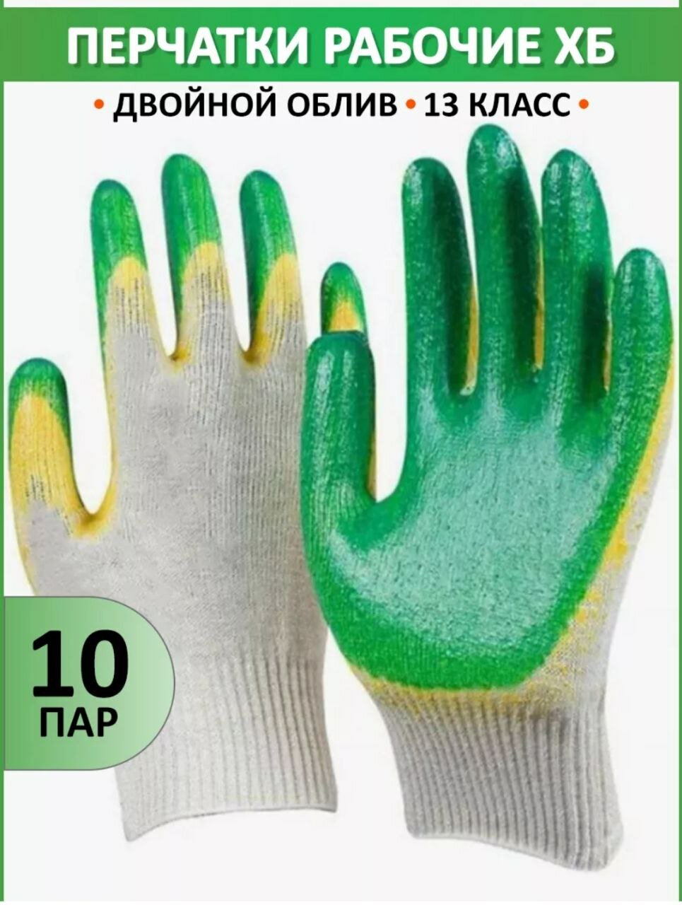 Перчатки рабочие ,двойной латексный облив 10 пар, зеленые. интересное: