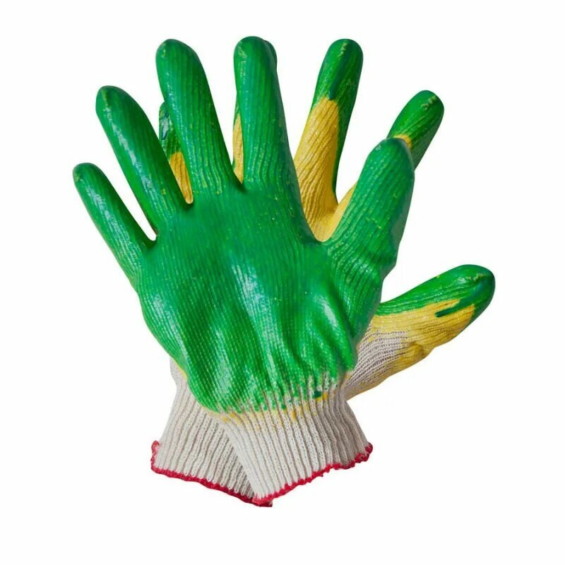 Купить Перчатки рабочие ,двойной латексный облив 10 пар, зеленые.