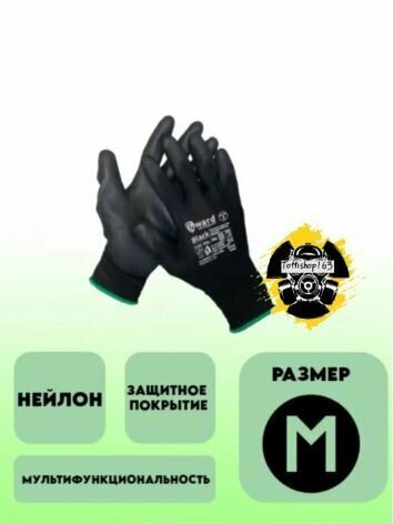 Перчатки нейлоновые с полиуретановым покрытием, размер M Gward Black черные, 12 пар.