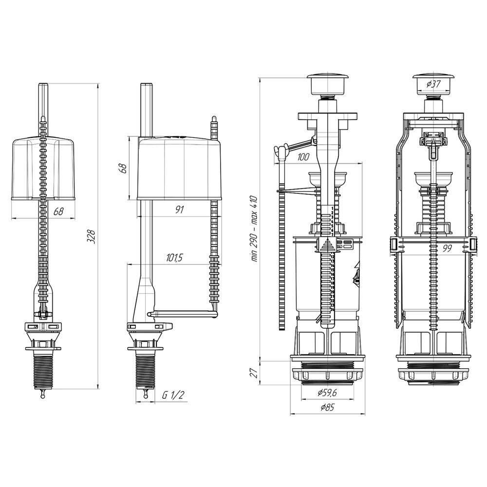 Комплект 2-уровневой арматуры для бачка унитаза WС63550М с нижним подключением