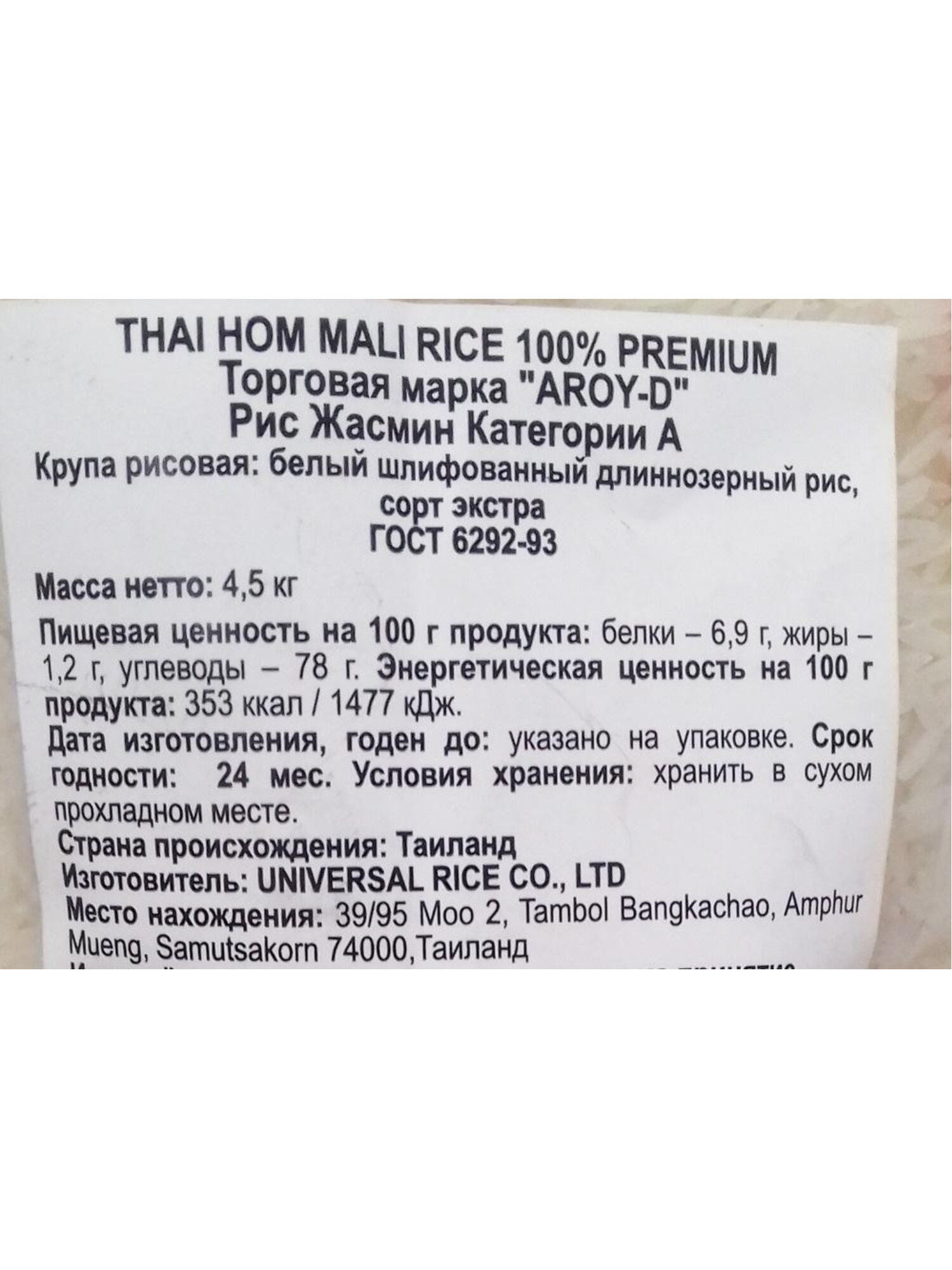 Рис Aroy-D жасмин белый 4,5 кг интересное: