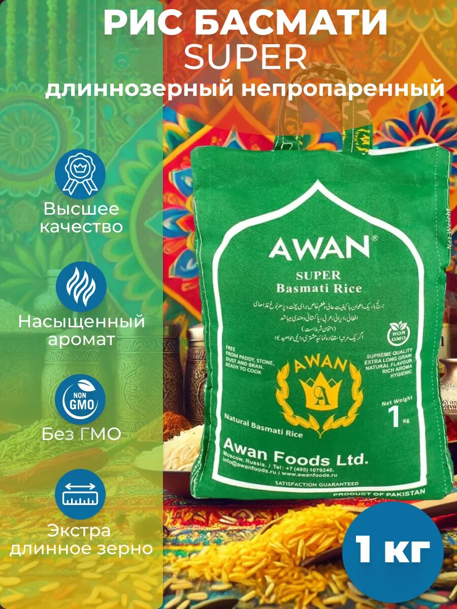 Рис Басмати Awan длиннозерный традиционный Super, 1 кг