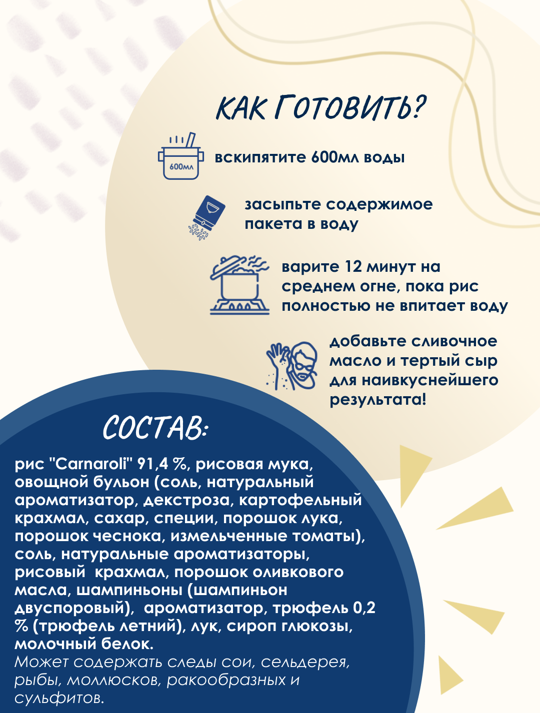 СохранитьРизотто Riso Scotti Risotto Tartufo Рис с трюфелем среднезернистый, 210 г интересное:
