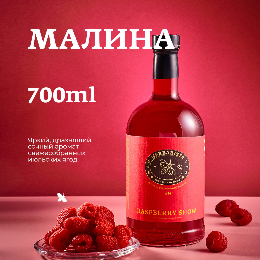 Сироп для кофе, коктейлей, десертов и выпечки Herbarista, Малина Raspberry Show, 700 мл