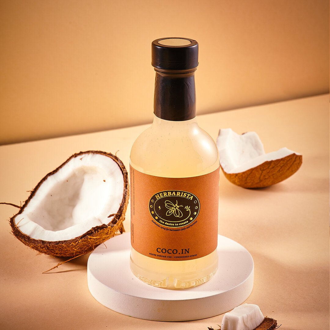 Сироп для кофе, коктейлей, десертов и выпечки Herbarista, Кокос с мякотью Coco.In, 250 мл