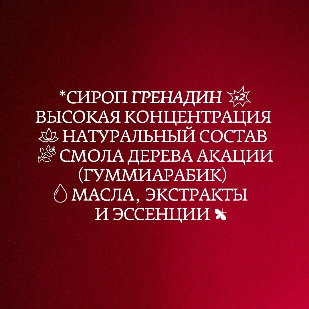 | Дополнительная информация | на основе натуральных ингредиентов; для приготовления сиропов используем соки и мякоть фруктов, пюре ягод, ореховые пасты, натуральные экстракты и специи |