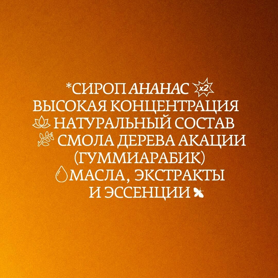 | Дополнительная информация | на основе натуральных ингредиентов; для приготовления сиропов используем соки и мякоть фруктов, пюре ягод, ореховые пасты, натуральные экстракты и специи |
