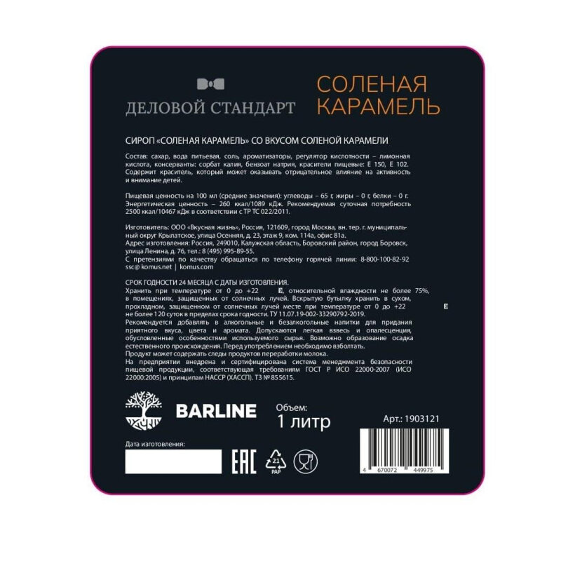 Сироп Деловой Стандарт Соленая карамель, стекло, 1л интересное: