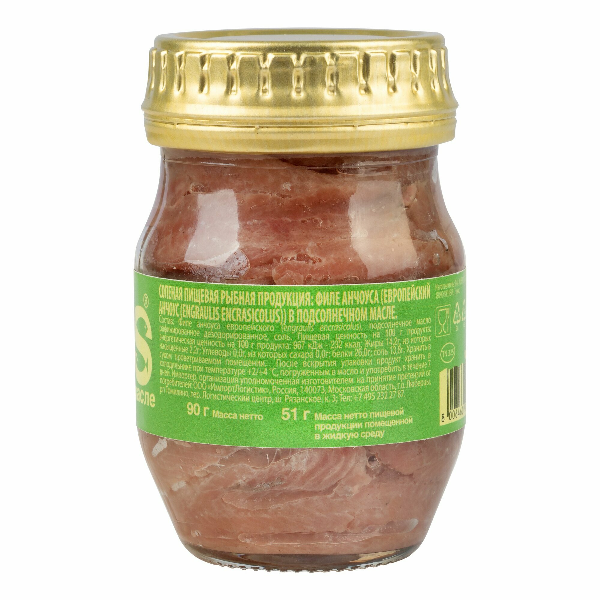| Состав | филе анчоуса европейского, подсолнечное масло, соль. |