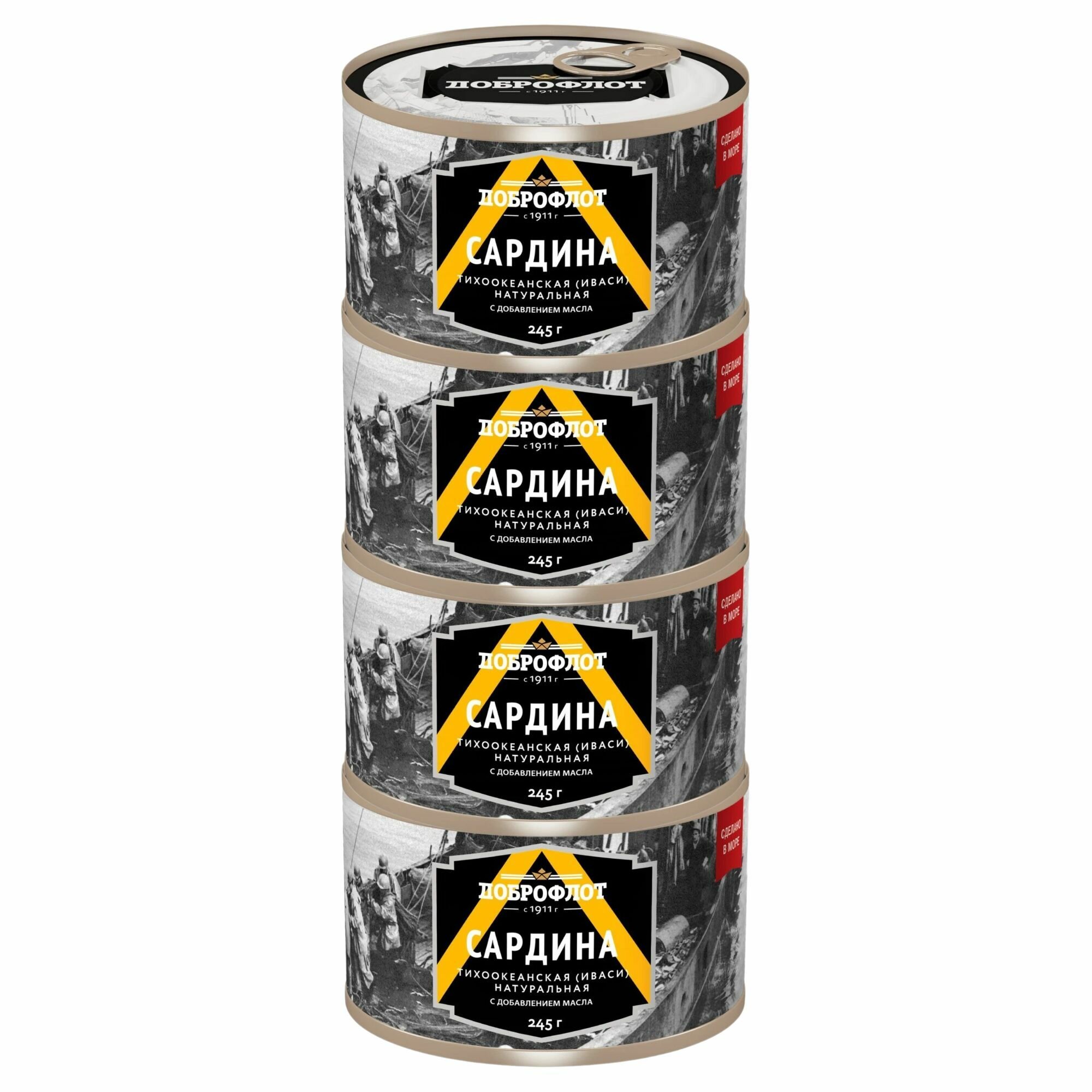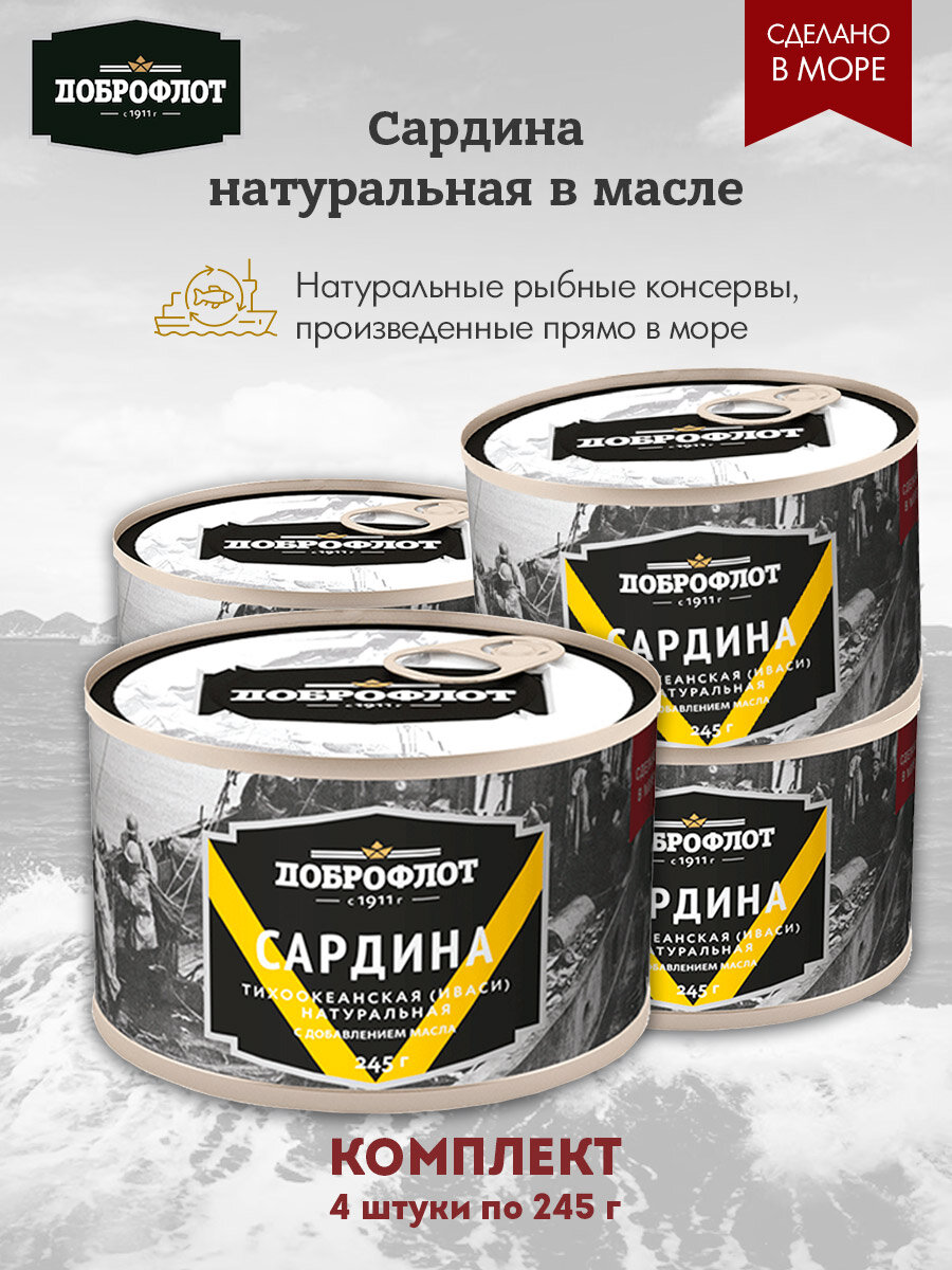 Купить Консервы рыбные "Доброфлот" Сардина тихоокеанская Иваси, натуральная с добавлением масла, 4 шт по 245 г