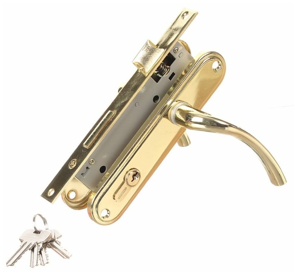 Замок врезной с ручками и цилиндром для деревянной двери аллюр 132/1 GP, цвет латунь, 5 ключей