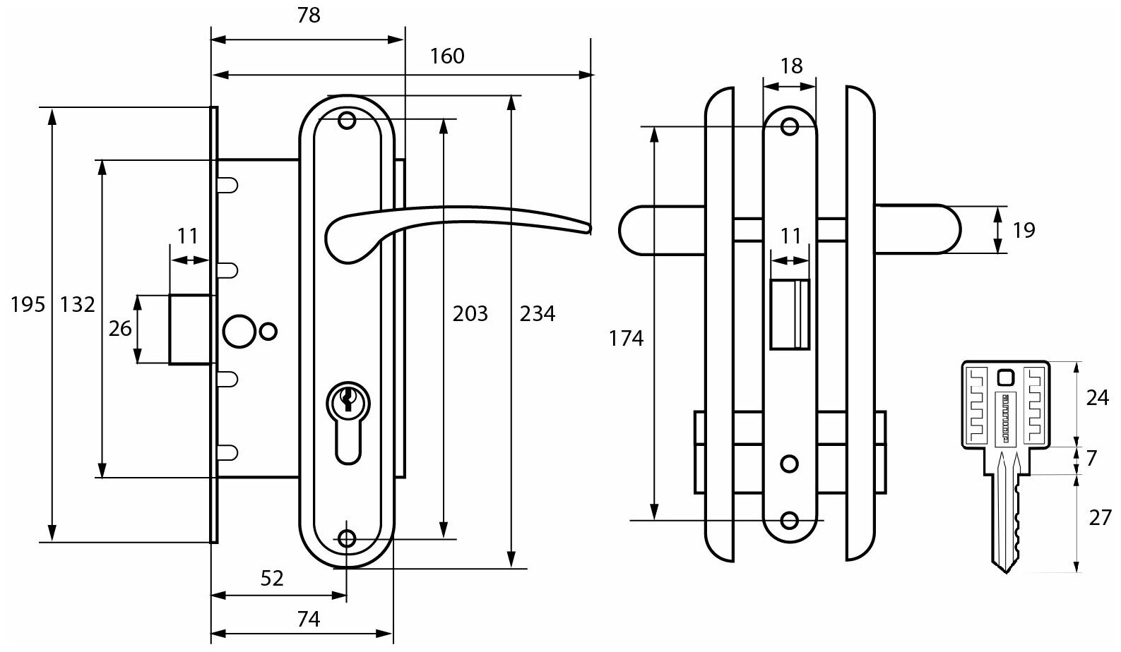 | Способ отпирания снаружи | ключ |