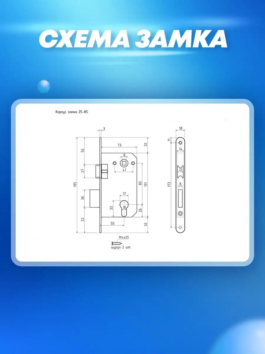 | Дополнительная информация | корпус замка под цилиндр; бэксет 50 мм; расстояние между отверстиями под стяжные винты 40 мм |