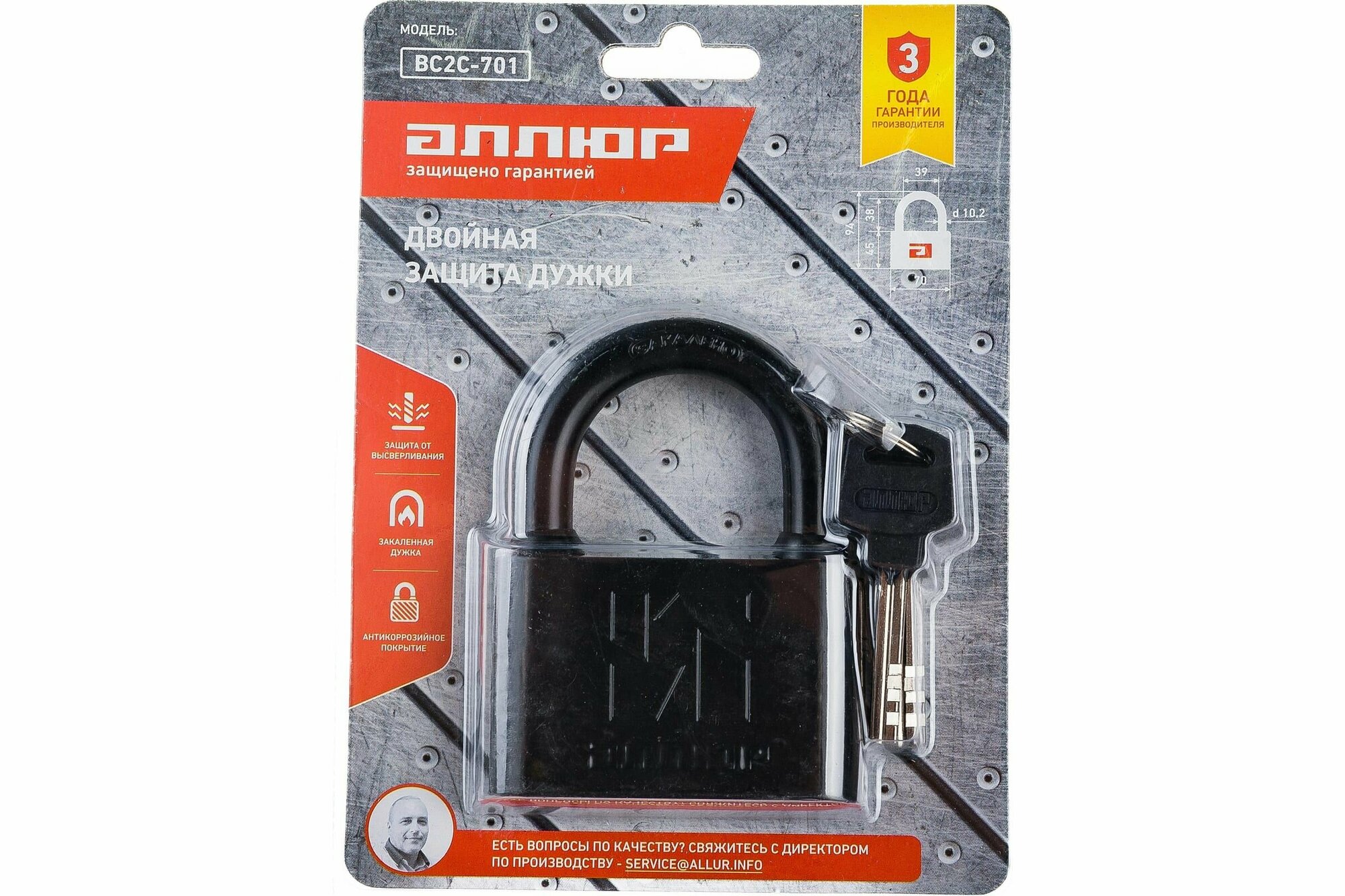 Замок навесной аллюр вс1ч-4505 d7мм 5 ключей