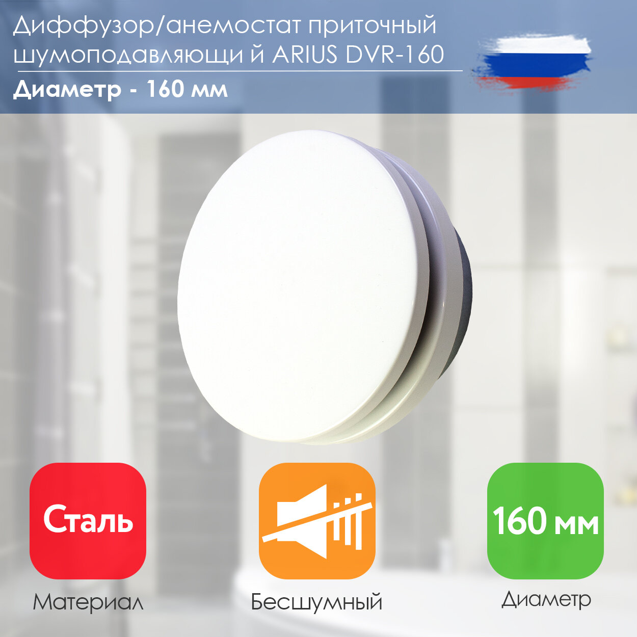 Диффузор/Анемостат приточный шумоподавляющий стальной Arius Dvr-160 диаметр 160 мм, белый RAL 9016 ( .