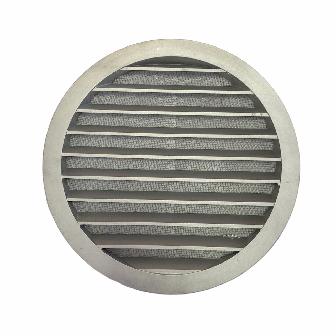 Решетка вентиляционная круглая d125 мм металлическая RAL 7044 светло-серая КИВ-125 с сеткой