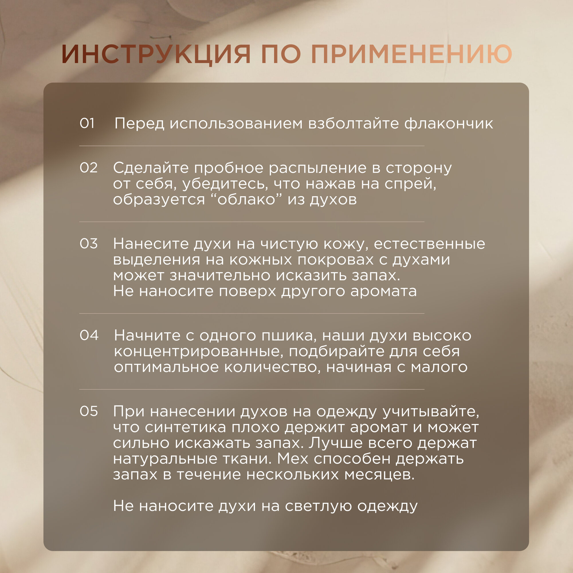 | Ноты | Цветочные / фруктовые / цитрусовые / древесные / шипровые / Восточные |
