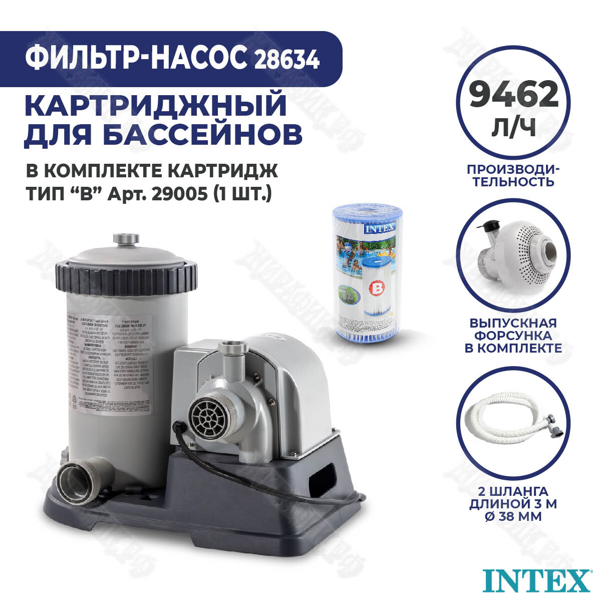 Фильтр-насос Intex 220 В, 9500 л/ч, арт. 28634/56634 интересное: