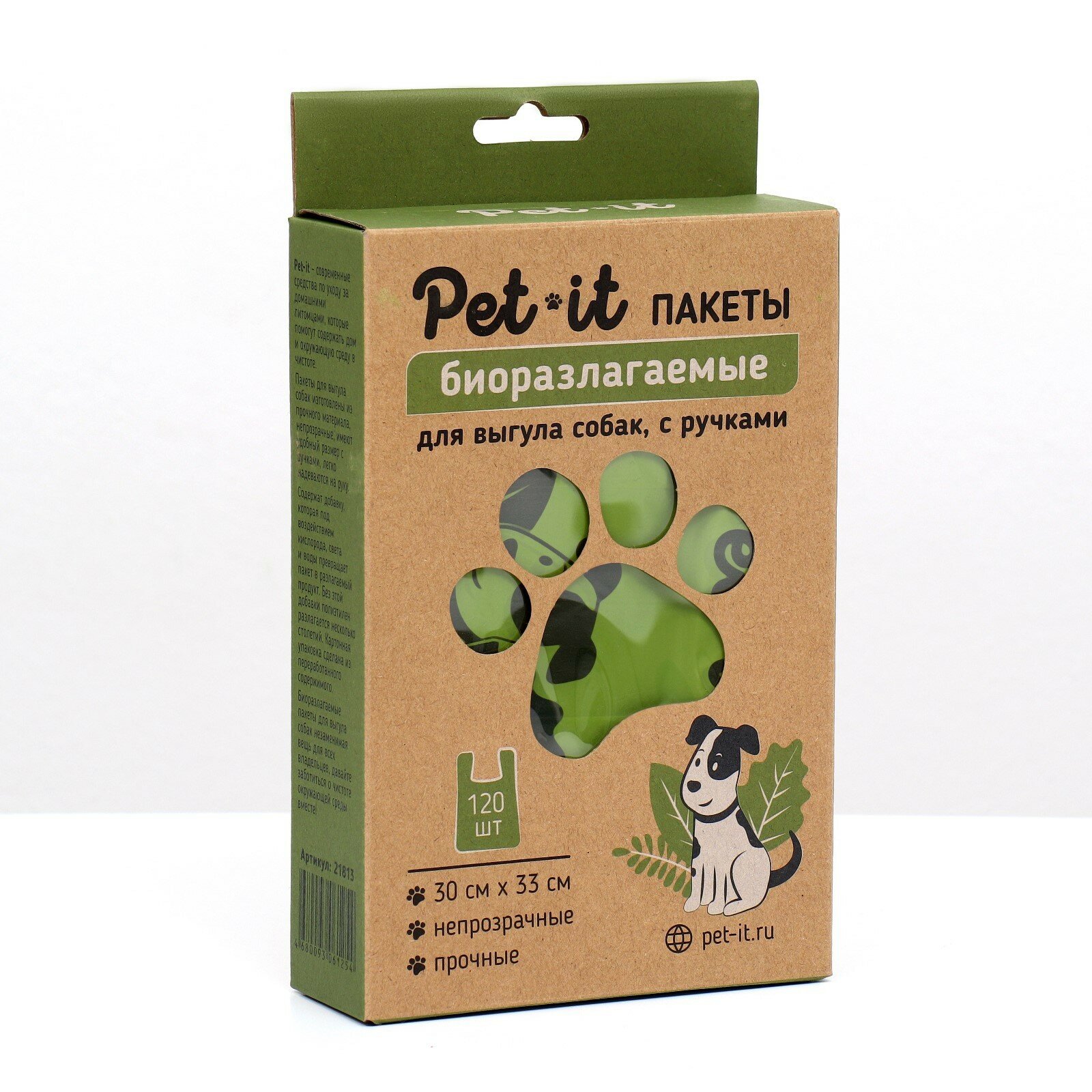 Купить Пакеты для выгула собак Pet-it 30х33см, биоразлагаемые, с ручками, коробка 120шт.