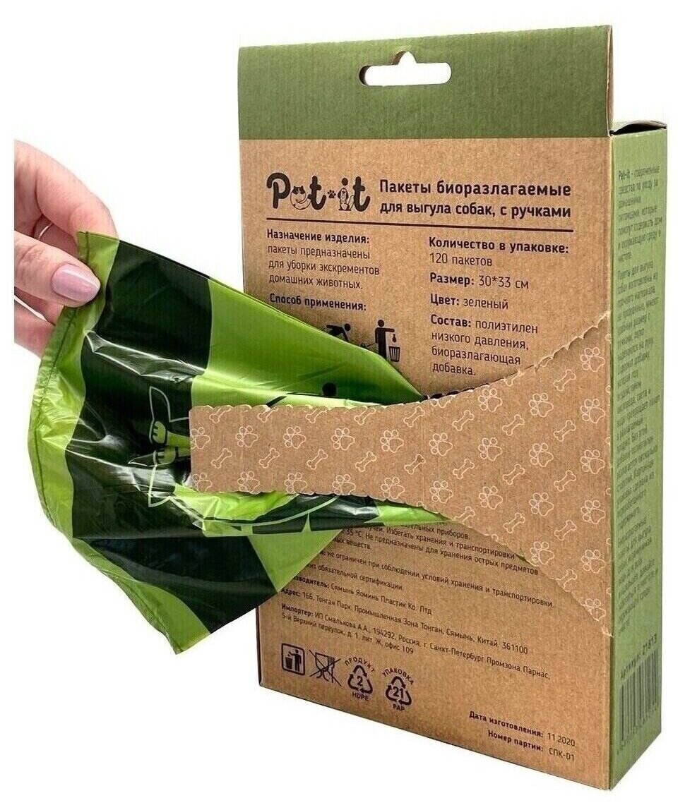 Пакеты для выгула собак Pet-it 30х33см, биоразлагаемые, с ручками, коробка 120шт. интересное:
