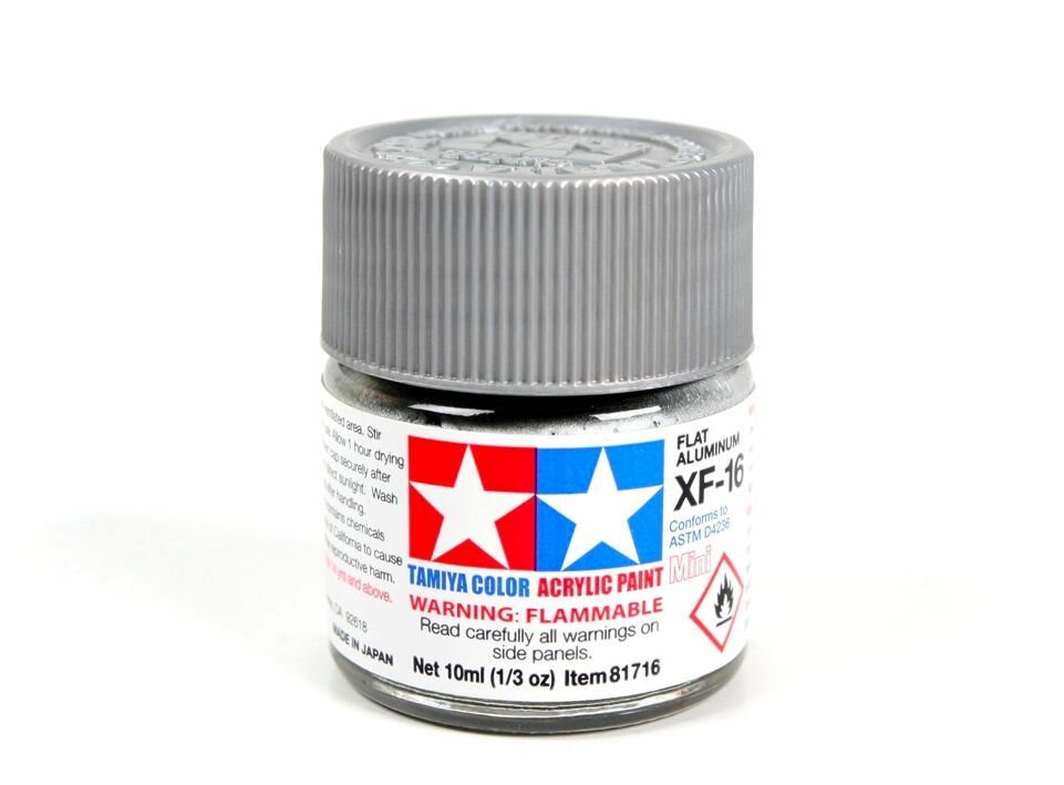 Купить Краска акриловая XF-16 Flat Aluminum, acrylic paint mini 10 ml. (Алюминий матовый металлик) Tamiya 81716
