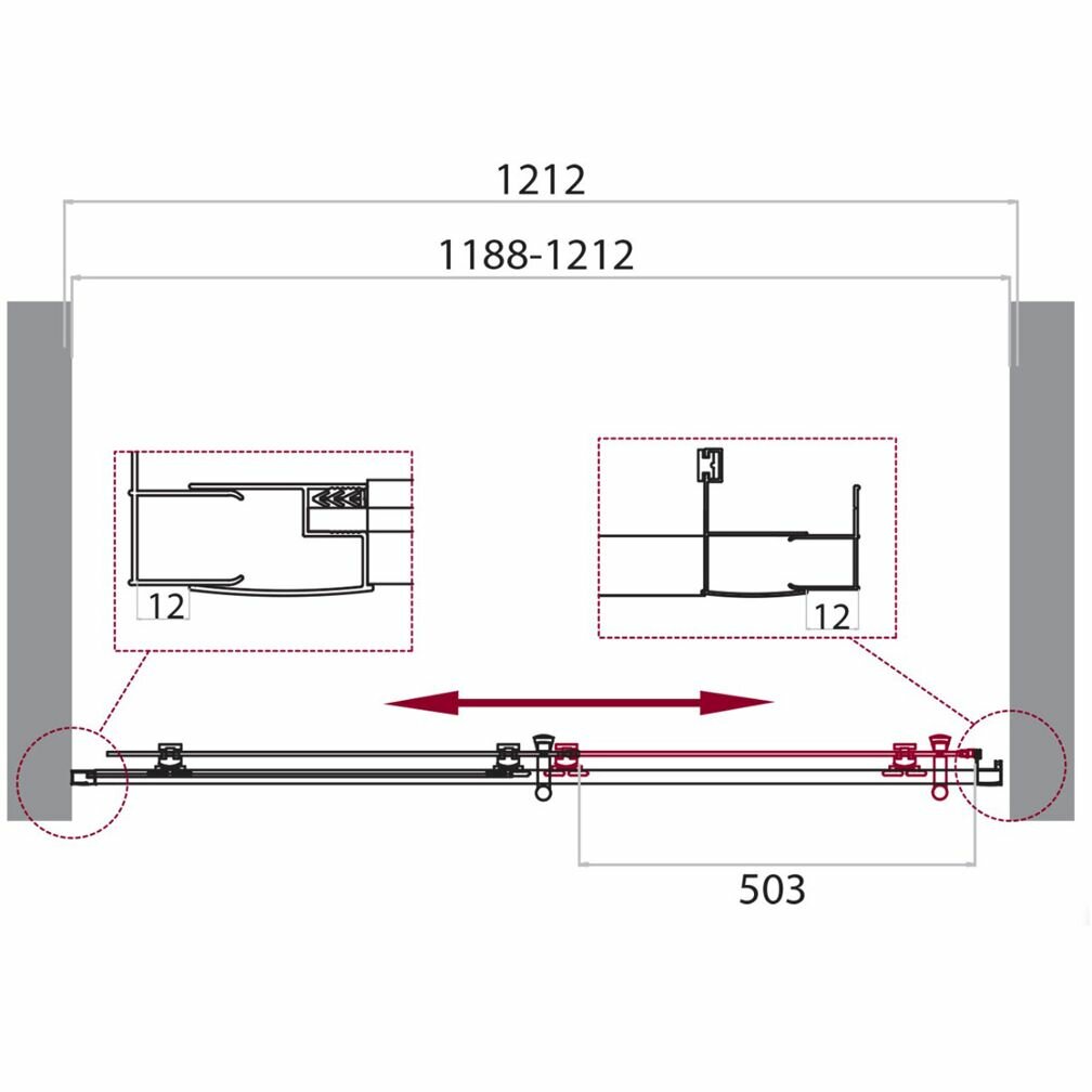| Дополнительная информация | стеклянная душевая дверь для установки в нишу; монтаж на поддон или непосредственно на плитку (универсальная); поддон в комплект не входит |