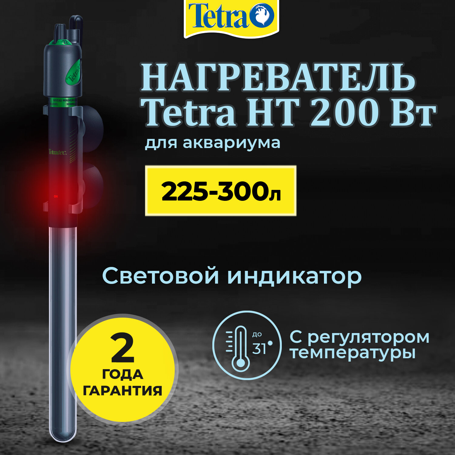 Нагреватель Tetra HT 200 Вт для аквариума 225 - 300 л (стеклянный, регулируемый)