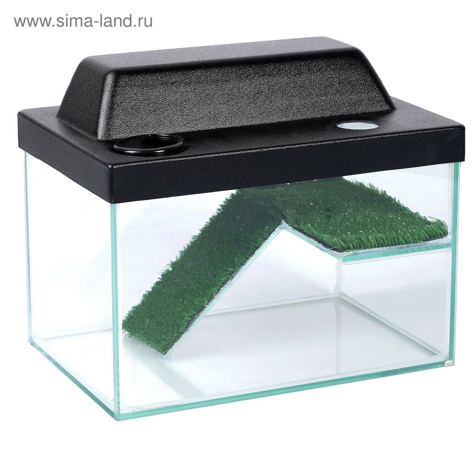 Террариум для черепах 12 литров, с крышкой, полкой и лесенкой, 30 х 20 х 20 см 4211339 интересное: