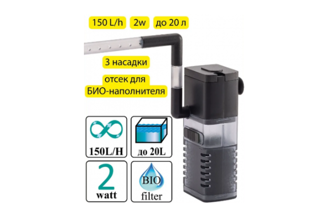 Barbus 044 Фильтр внутренний с аэратором и флейтой 150л/ч 2ватт, 0-20л