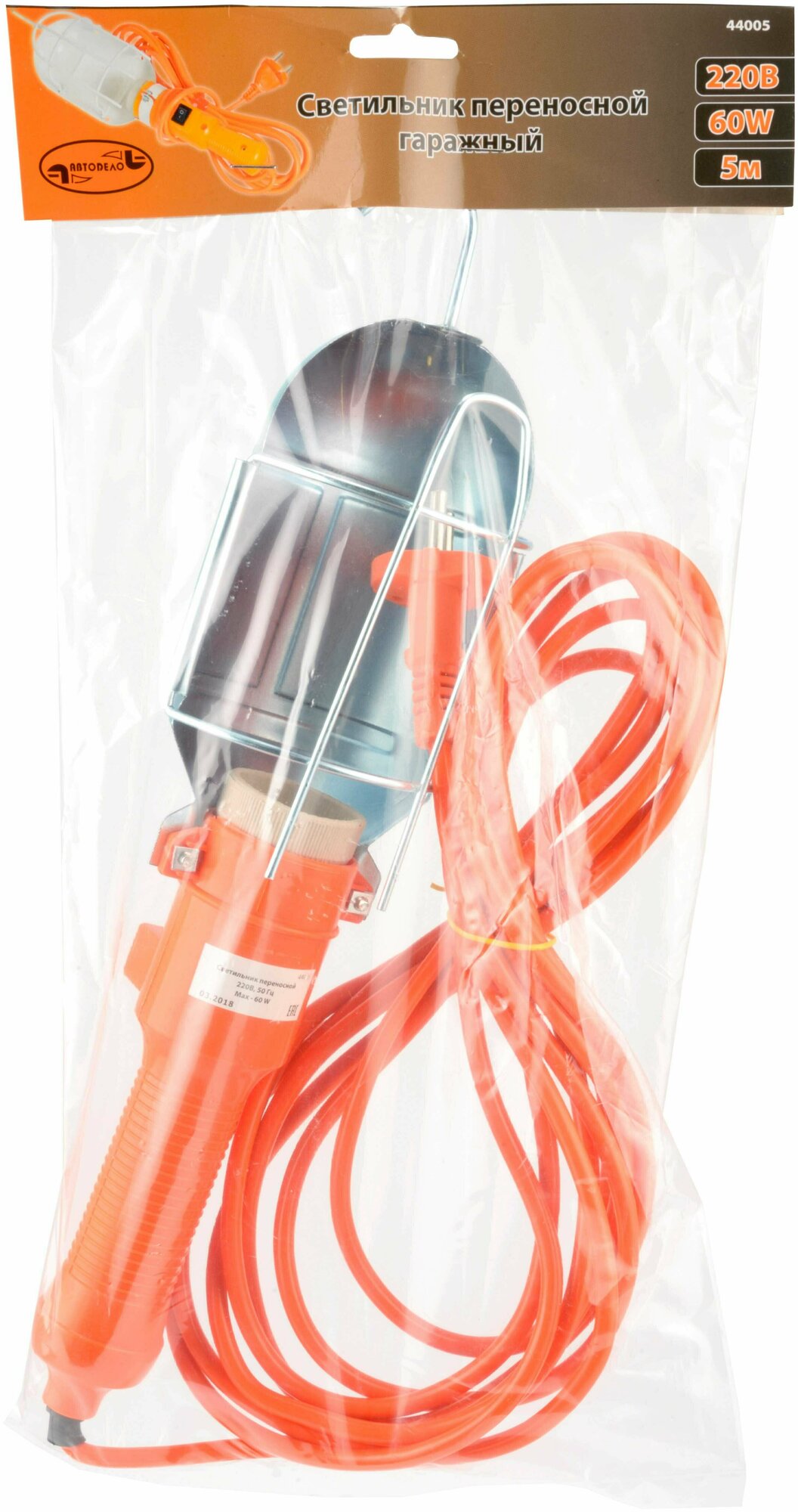 Светильник-переноска универсальный "АвтоДело" ремонтная, 220В/60Вт, кабель 5 м,44005