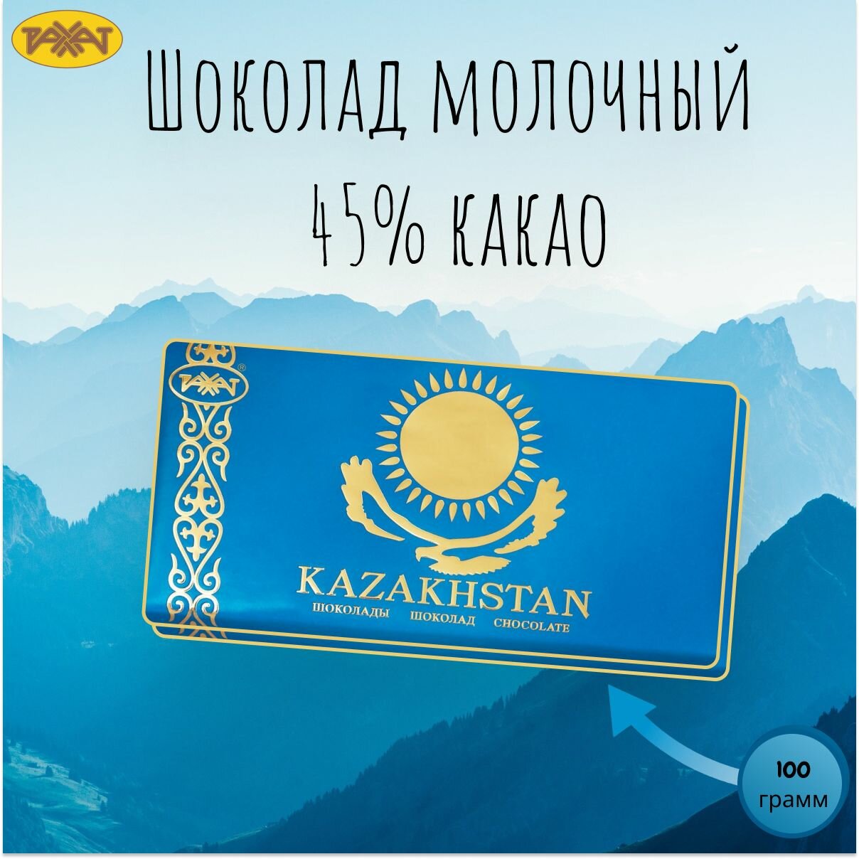 Рахат шоколад молочный "Казахстанский 45%" 100г