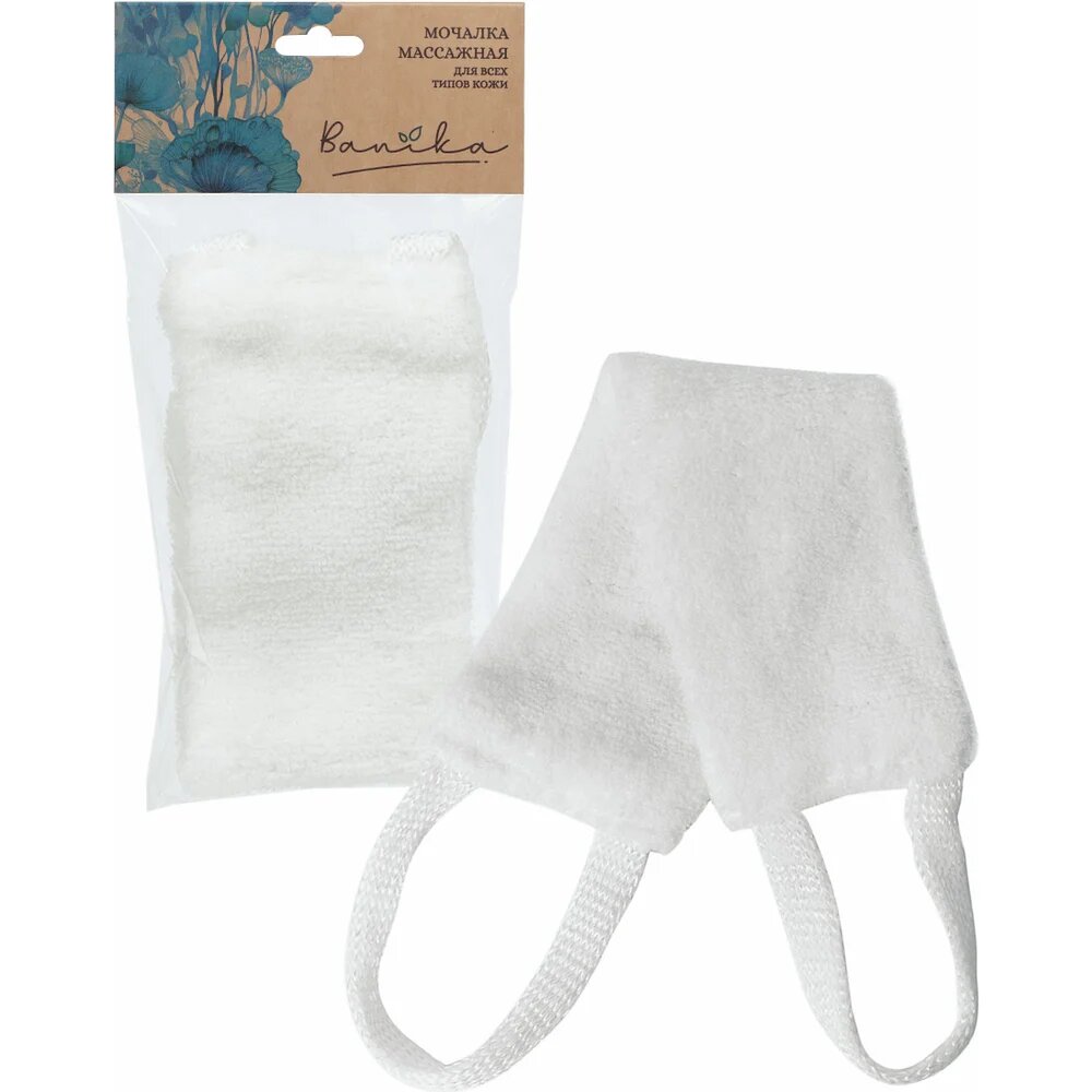 Banika Мочалка ""Массажная длинная с ручками", белая, полиэстер, 46x10см Я285 интересное: