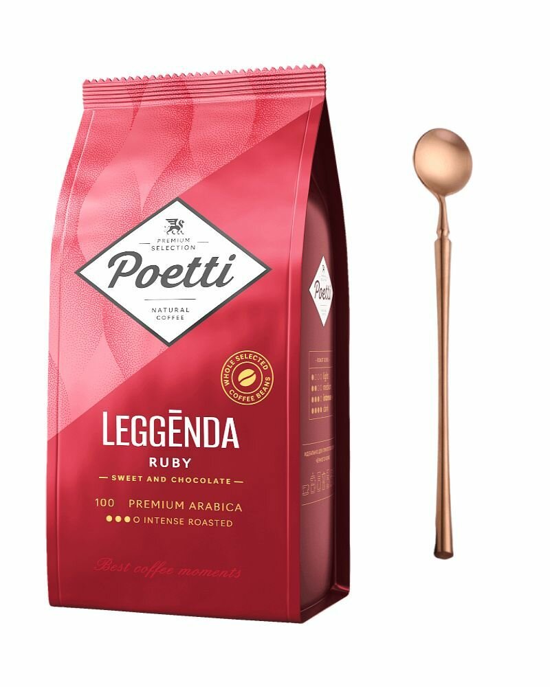 Кофе в зернах Poetti Legenda Ruby 100% арабика, 1 кг + ложка