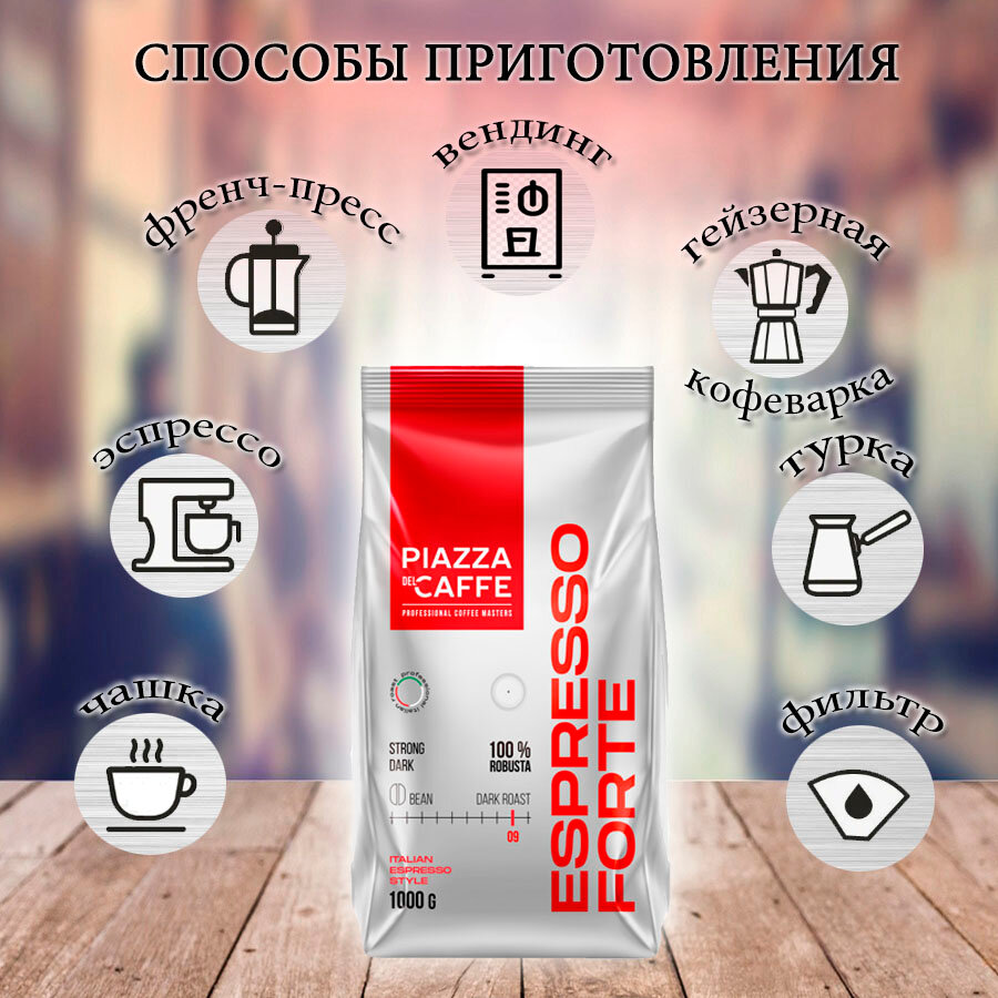 Кофе в зернах Piazza del Caffe Espresso Forte, 1 кг (комплект 10 шт.) 6010972