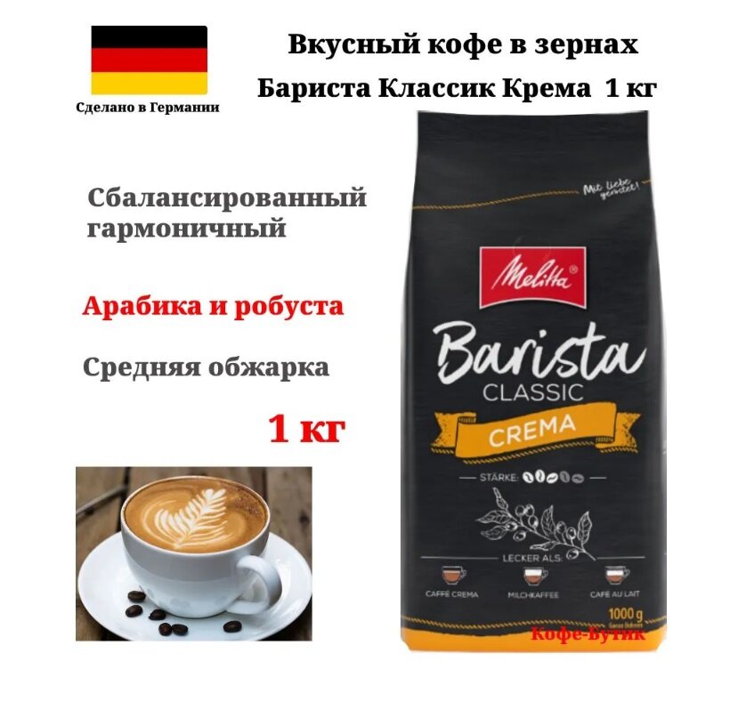 Кофе в зернах Melitta Barista Classic Crema 1кг. интересное: