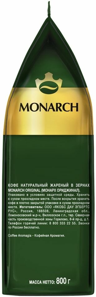 Кофе в зернах Monarch Original, вакуумный пакет, 800г