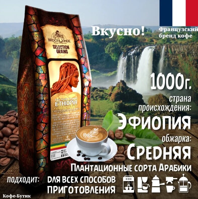 Кофе в зернах Broceliande Ethiopia Yirgacheffe 1кг интересное: