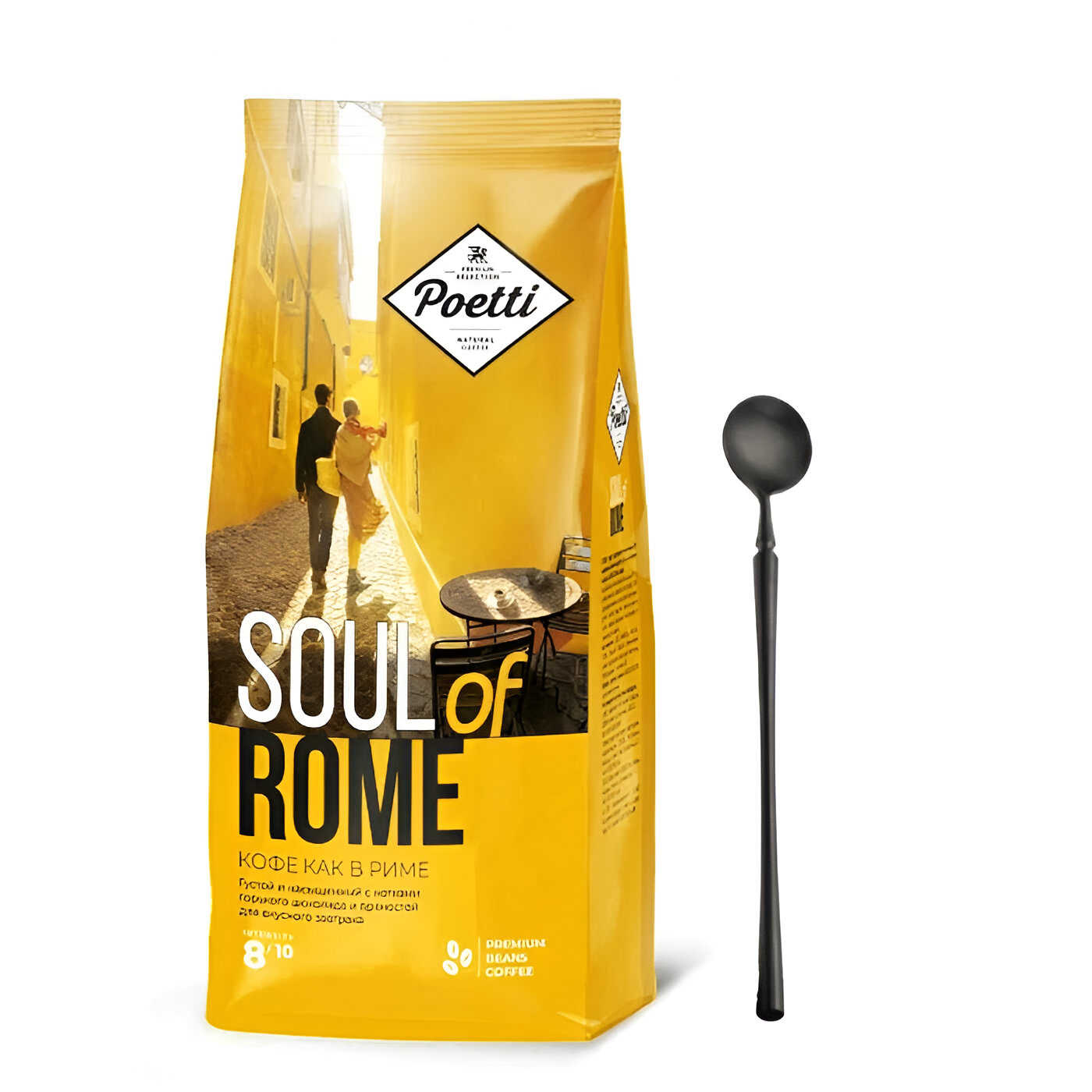 Купить Кофе в зернах Poetti Soul of Rome, 100% арабика, 800г + ложка