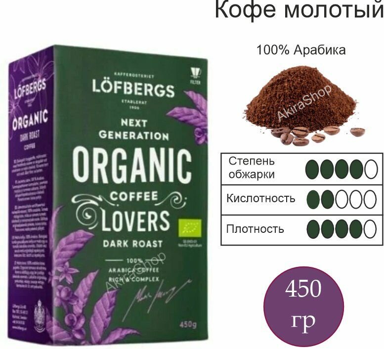 Кофе молотый LOFBERGS Organik Dark Roast 450г интересное: