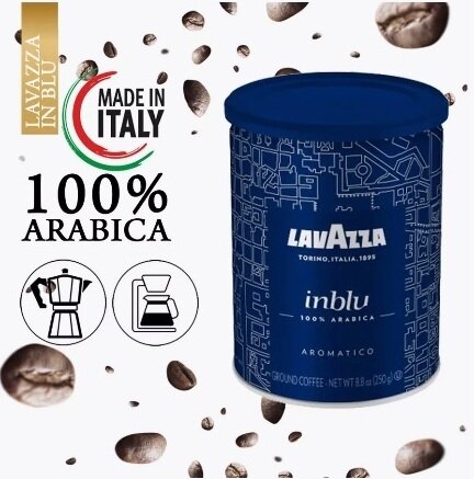 Купить Кофе молотый LavAzza In blu 100% арабика, железная банка, 250г.