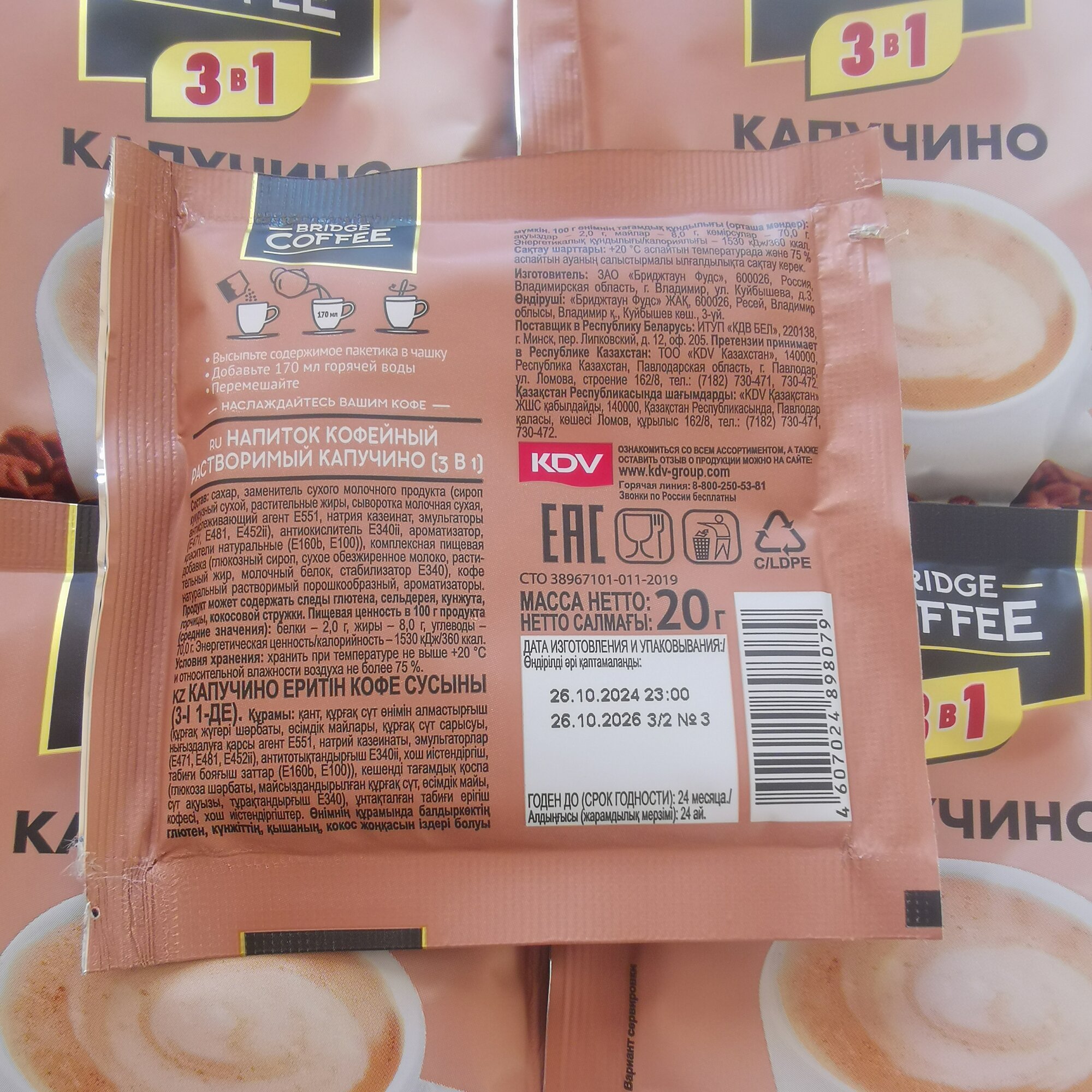 «Bridge Coffee», напиток кофейный 3 в 1 Капучино, 20 г (упаковка 40 шт.)