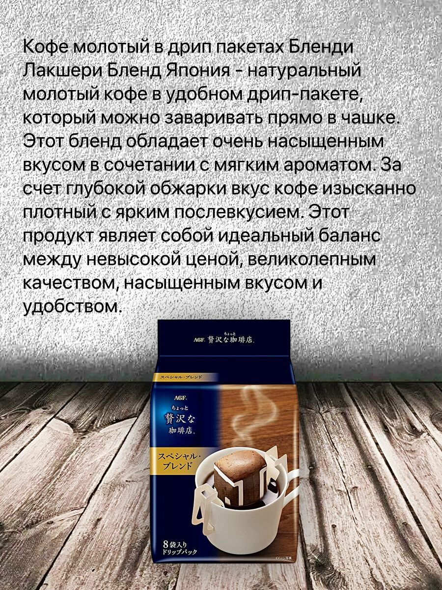 Японский молотый кофе средней обжарки AGF Luxury Blend в дрип-пакетах ( drip ), упаковка 8 штук
