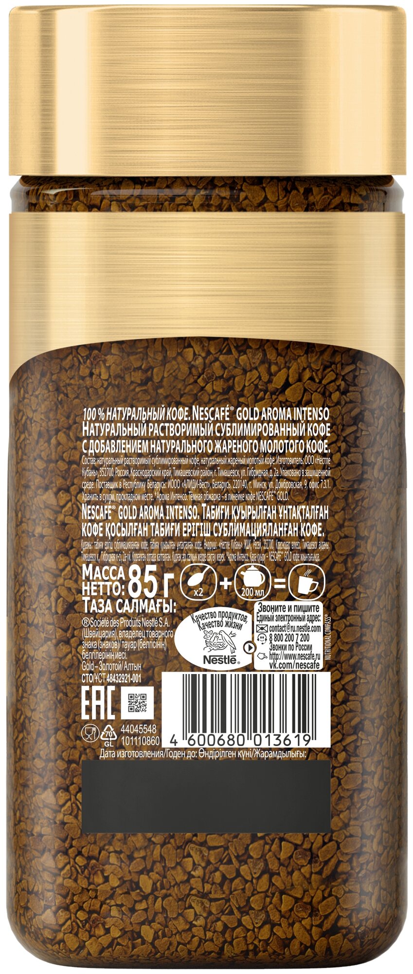 Nescafe Gold Aroma Intenso 85гр х 1шт натуральный растворимый сублимированный кофе