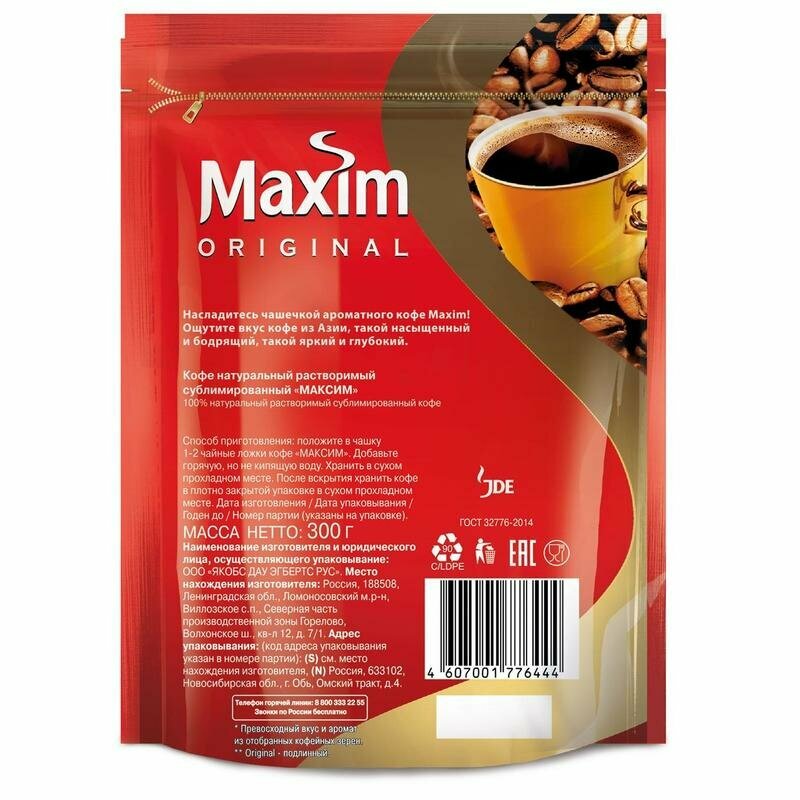 Кофе растворимый Maxim Original натуральный сублимированный, пакет, 300 г