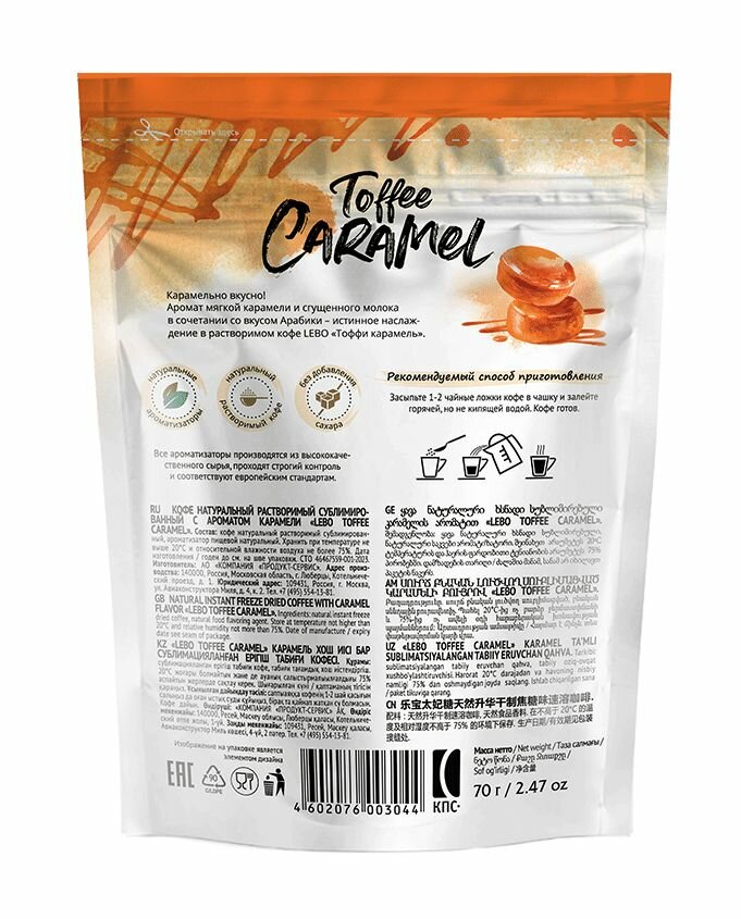 Кофе растворимый Lebo Aroma Toffe Caramel, 70 гр, дой-пак интересное: