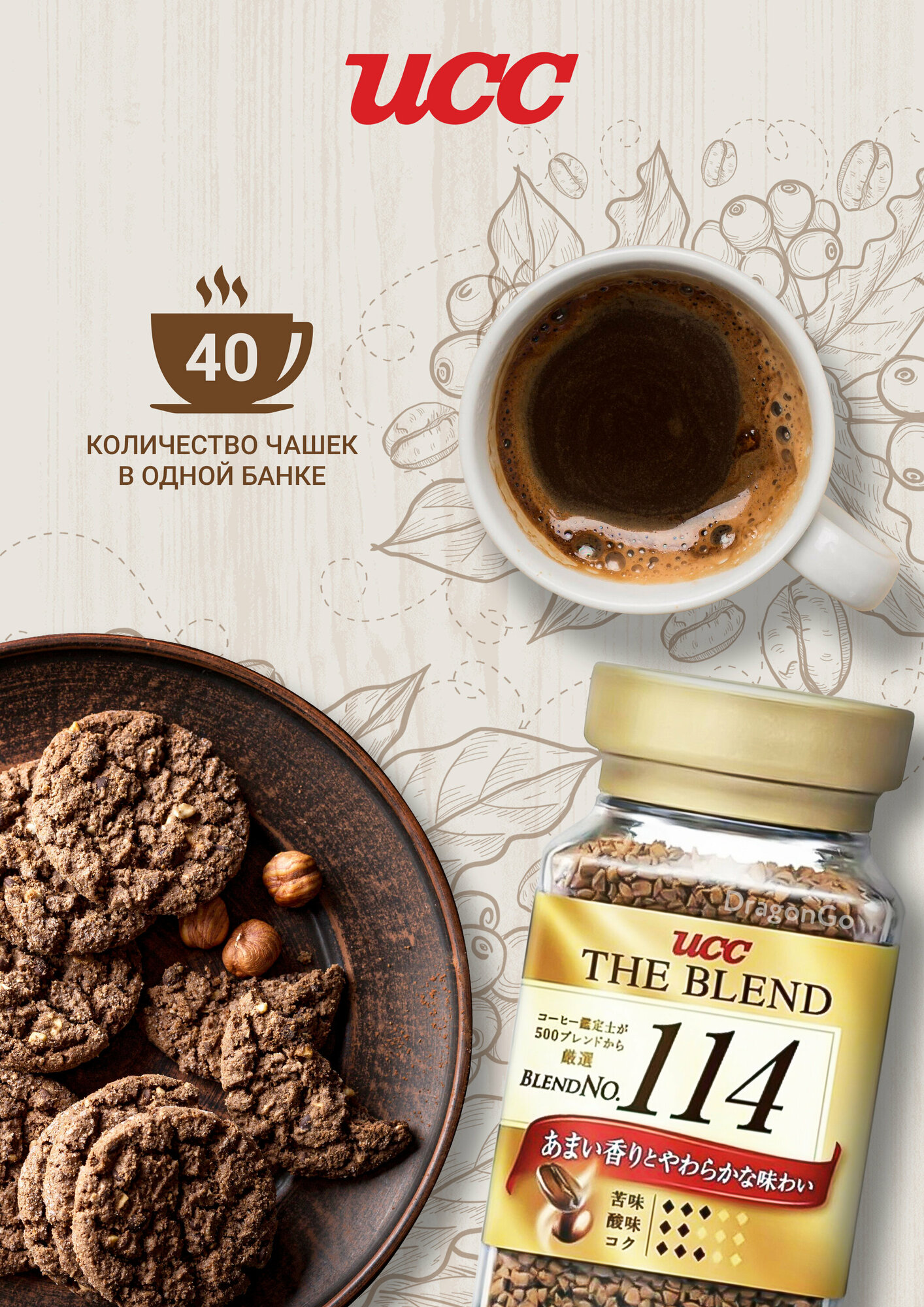 Кофе натуральный растворимый сублимированный Бленд 114 UCC, 135 г