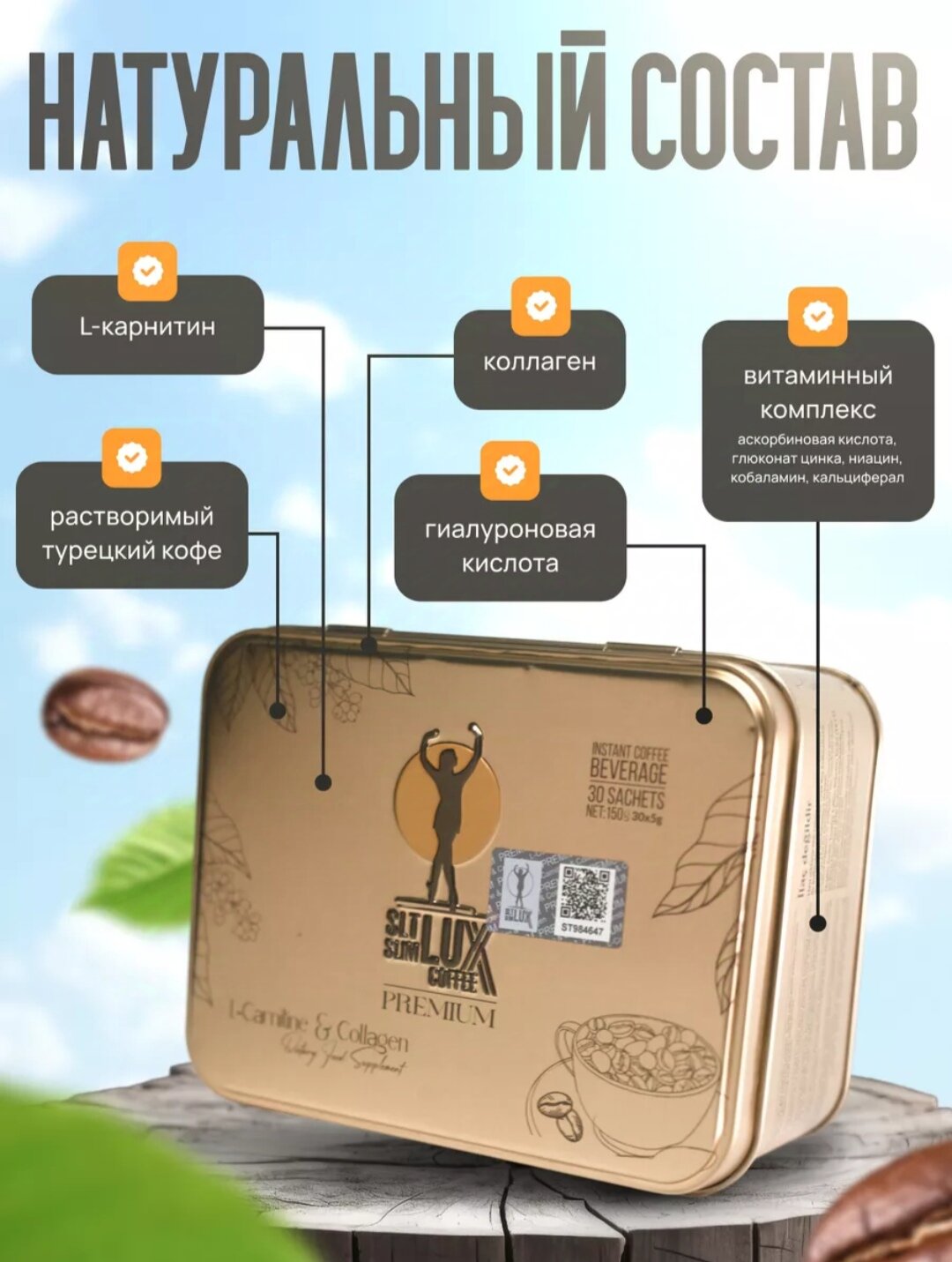 Кофе для похудения Viiitamins Lux coffe Premium, 30 пакетиков интересное: