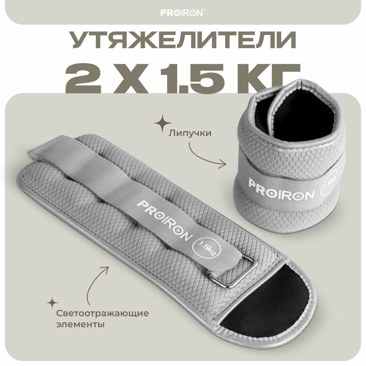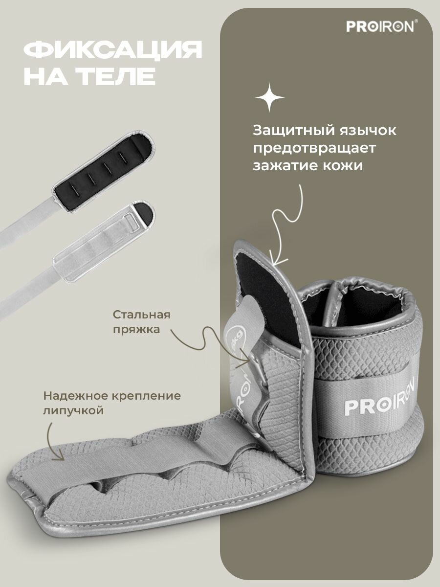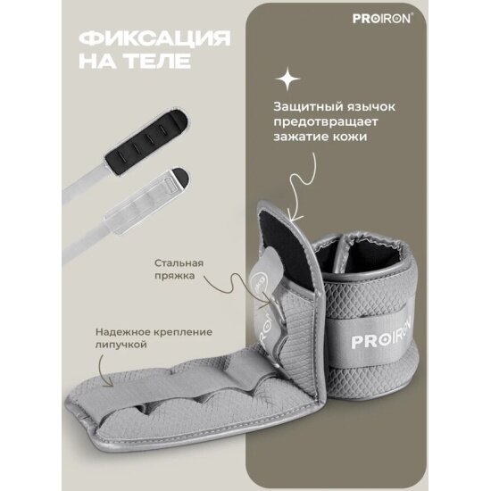 Утяжелители для ног, рук, 1.5 кг, PROIRON, набор 2 штуки, серые